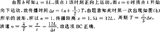 ÔÚ¾ùÔȽéÖÊÖÐѡȡƽºâλÖÃÔÚͬһֱÏßÉϵÄ9¸öÖʵ㣬ÏàÁÚÁ½ÖʵãµÄ¾àÀë¾ùΪL£¬Èçͼ(a)Ëùʾ£®Ò»ÁÐºá²¨ÑØ¸ÃÖ±ÏßÏòÓÒ´«²¥£¬t£½0ʱµ½´ïÖʵã1£¬Öʵã1¿ªÊ¼ÏòÏÂÔ˶¯£¬¾¹ýʱ¼ä¦¤tµÚÒ»´Î³öÏÖÈçͼ(b)ËùʾµÄ²¨ÐΣ®Ôò¸Ã²¨µÄ