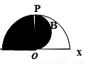 £¨4£©Á£×ÓÔڴų¡ÖпÉÄܳöÏÖµÄÇøÓò£ºÈçͼÖÐÒÔOP= RΪֱ¾¶µÄ°ëÔ²ÒÔ¼°ÒÔ0ΪԲÐÄOP= RΪ°ë¾¶µÄÔ²Óë´Å³¡ÏཻµÄ²¿·Ö£¬»æÍ¼Èçͼ¡££¨2·Ö£©