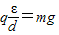 C、根据受力平衡,则有qE=mg,因此电场强度为
