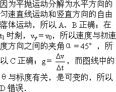 t1时刻物体的速度方向与初速度方向夹角为45°