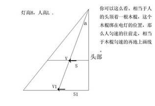 —个从街上路灯的正下方经过,看到自己头部的影子正好在自己脚下,如果人以不变的速度朝前走,则他头部的影子相对地的运动情况是( )