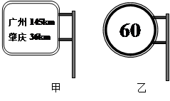 在某段上,分别如图所示的甲、乙两块告示牌,告示牌上各数字的意思是![]()