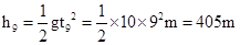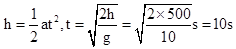试题分析:(1)小球做自由落体运动,是初速度为0加速度为g的匀加速直线运动,由位移公式求出时间为10s;