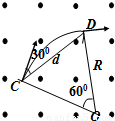 【答案】分析:(1)质子在匀强磁场中受洛伦兹力作用而做匀速圆周运动:①找圆心:过C点作垂直于速度v的直线CO,过D点作垂直于速度v的直线DO,O即为质子做匀速圆周运动的圆心;②求半径:如图所示,根据几何关系求出质子运动轨迹的半径R=CO=d,圆心角θ=60°;据半径公式 r=