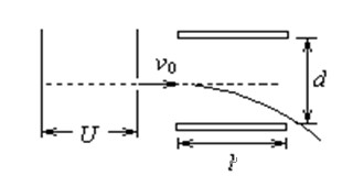 一束初速度不计的电子流在经U =5000V的加速电压加速后,在距两极板等距处垂直进入平行板间的匀强电场,如图所示,若板间距离d =1.0cm,板长L =5.0cm,则![]()