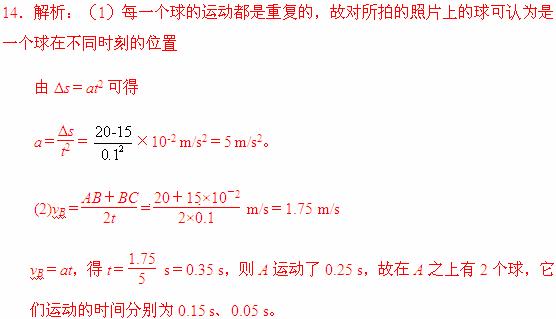(2013宝鸡检测)相同的小球从斜面的某一位置每隔0.1s释放一颗,连续放了几颗后,对斜面上正运动着的小球拍下部分照片,如图所示,现测得AB=15 cm,BC=20 cm,已知小球在斜面上做加速度相同的匀加速直线运动(初速度为零),求: