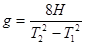 在地质、地震、勘探、气象和地球物理等领域的研究中,需要精确的重力加速度g值,g值可由实验精确测定.近年来测g值的一种方法叫“对称自由下落法”,它是将测g值归于测长度和时间,以稳定的氦氖激光的波长为长度标准,用光学干涉的方法测距离,以铷原子钟或其他手段测时间,此方法能将g值测得很准.具体做法是:将真空长直管沿竖直方向放置,自其中的O点向上抛小球,从抛出小球至小球又落回抛出点的时间为T2;小球在运动过程中经过比O点高H的P点,小球离开P点至又回到P点所用的时间为T1.由T1、T2和H的值可求得g等于 ( )