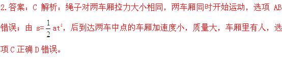 (2012年4月上海普陀区调研)如图所示,两车厢的质量相同,其中一个车厢内有一人拉动绳子使两车厢相互靠近。若不计绳子质量及车厢与轨道间的摩擦,下列对于哪个车厢里有人的判断正确的是