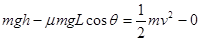 设斜面和水平方向夹角为θ,斜面长度为L,则物体下滑过程中克服摩擦力做功为: