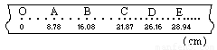 如图是某次实验时用打点计时器打出的一条纸带.计时器所用电源的频率为50Hz.图中A、B、C、D、E为按时间顺序所取的五个计数点,相邻计数点间的时间间隔为0.1s,A、B、C、 D、E各点与O点的距离在图中标出(单位是cm),则打B点时纸带的运动速度大小是___________m/s,纸带运动过程中的加速度大小是___________m/s2.(最终结果保留3位有效数字) ![]()