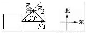 如图(俯视),物体静止在光滑水平桌面上,一个水平向东的F1作用在物体上,但要使物体获得方向东偏北 30的加速度,那么必须同时对物体施加另一个作用力F2,F2的最小值为( )A.