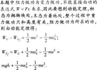 在离地面高为h处竖直上抛一质量为m的物块,抛出时的速度为v0,当它落到地面时速度为v,用g表示重力加速度,则在此过程中物块克服空气阻力所做的功等于