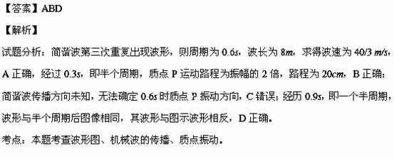 =1.2 s时,恰好第三次重复出现图示的波形。根据以上信息,下面各项能确定的是( )