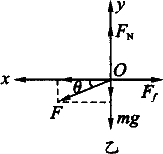 解析:木块匀速运动时受四个力的作用:重力mg、推力F、支持力FN、摩擦力Ff沿水平向左为x轴正方向,竖直向上为y轴正方向,建立直角坐标系,将力F进行正交分解(如图,这样建立坐标系,只需分解F).由于木块做匀速运动,所以在x轴上向左的力等于向右的力(水平方向二力平衡);在y轴上,向上的力等于向下的力(竖直方向上的力平衡),即 F·cosθ=Ff, FN=mg+Fsinθ. 又∵Ff=μFN, ∴Ff=μ(mg+Fsinθ).