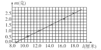 (4分)为了测量某一弹簧的劲度系数,将该弹簧竖直悬挂起来,在自由端挂上不同质量的砝码.实验测出了砝码的质量m与弹簧长度l的相应数据,其对应点已在图上标出.(g=9.8m/s2)