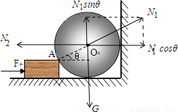 如图所示,半径为R,重为G的均匀球靠竖直墙放置,左下方有厚为h(h<R)的木块,现用水平推力F推木块.若不计一切摩擦,求:(1)画出球刚好离开地面时候,球和木块的受力示意图(分别在答卷的图甲、图乙中画出)