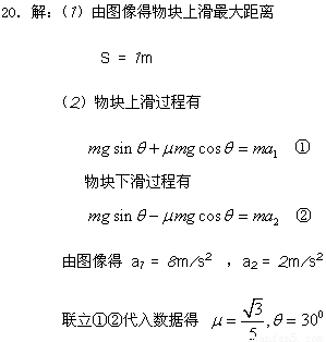 一物块以一定的初速度沿斜面向上滑出,利用速度传感器可以在计算机屏幕上得到其速度大小随时间的变化关系图象如图所示,重力加速度g取10 m/s2.求:
