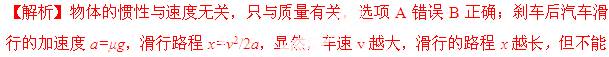 一汽车在路面情况相同的公路上直线行驶,下面关于车速、惯性、质量和滑行路程的讨论,正确的是( )