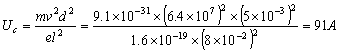 电子通过平行金属板所用时间l/v»10-9s,交变电压周期T=2´10-2s,可见l/v (1)电子进入平行极板中间后,在水平方向为匀速运动,在竖直方向为匀加速运动,设电子束刚好不能通过平行极板的电压为Uc,电子经过平行极板的时间为t,所受电场力为f,则: