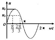 (2)当U<91V时电子束将通过两极板,当U>91V时,电子束将打在极板上而间断. 由U=U0sinwt的图像(如图)可以看出,要使t1=2t2,则wt= 得U0=105V.