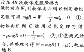 圆弧,半径为R,水平放置的BC段长度为R.一小物块质量为m,与轨道间动摩擦因数为μ,当它从轨道顶端A由静止下滑时,恰好运动到C点静止,那么物体在AB段克服摩擦力做的功为