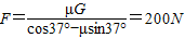 由平衡条件知:Fcos37°=f1=μFN---①