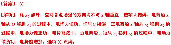 D. 负电荷沿x轴从x1移到x2的过程中,电场力做负功,电势能增加