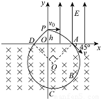 【答案】分析:(1)分析电子的运动情况:电子从P到A,受到竖直向下的电场力而做类平抛运动(或匀变速曲线运动);进入磁场从A到C再到D,做匀速圆周运动;离开磁场从D到P,做匀速直线运动. 画出轨迹.