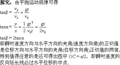 做平抛运动的物体从开始运动到某时刻的位移方向与这一时刻的速度方向相同吗?如果不同,你能找出它们之间的关系吗?
