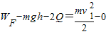 而WG=-mgh,关键是明确安培力做负功,由功能关系克服安培力做功为回路产生的电热2Q,W安=-2Q.