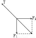 解:以滑轮为研究对象,分析受力,作出力图如图所示.根据动滑轮不省力的原理可知,拉力F1=F2=G.根据平衡条件得,绳子OB的拉力T与F1、F2的合力大小相等,方向相反,得到T=