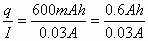 电池的电动势是1.2 V,容量是600 mAh,按0.03 A的电流工作,最多可使用t= |