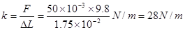 ¢Ý¼ÆË㵯»ÉµÄ¾¢¶ÈϵÊýk£½ N/m¡££¨gÈ¡9.8m/s2£©