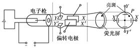 如图9所示,示波管是示波器的核心部件,它由电子枪、偏转电极和荧光屏组成.如果在荧光屏上P点出现亮斑,那么示波管中的 ( )![]()