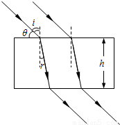如图所示,真空中有一束平行单色光射入厚度为h的玻璃砖,光与玻璃砖上表面的夹角为θ,入射光束左边缘与玻璃砖左端距离为b1,经折射后出射光束左边缘与玻璃砖的左端距离为b2,真空中的光速为c.则①请在图乙中作出光路图;