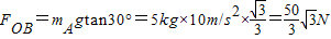 如图所示,物体A、B都处于静止状态,其质量分别为mA=5kg,mB=10kg,OB呈水平,OP与竖直方向成30°角.求物体B受到的摩擦力为多少?(g取10m/s2)