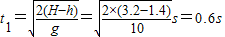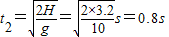 解答:解:(1)水滴下落至窗台通过的距离为 H=3.2 m