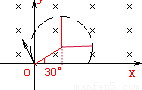 粒子的运动轨迹如图中虚线,红色线段为圆的半径,由已知得进入磁场时,半径与x轴正方向的夹角为30°,所以有a=R+