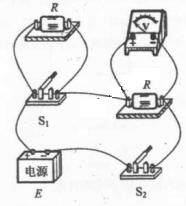 图1为测量电压表V内阻r的电路原理图。图中两个固定电阻的阻值均为R,S1、S2是开关,E是电源(内阻可忽略).
