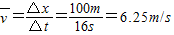 一个运动员在百米赛跑中,测得他在50m处的速度是6m/s,16s末到达终点时速度为7.5m/s,则全程的平均速度为( )