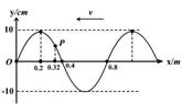 某时刻的波形图如右所示,波沿x轴负方向传播,质点P的坐标为x=0.32m。求: