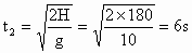 所以从绳子突然断裂到重物落地共需时间 解法二:从统一的匀减速运动考虑.从绳子断裂开始计时,经时间 t后物体落至抛出点下方;规定初速度方向为正方向,则物体在时间t内的位移h=-175m.由位移公式:即