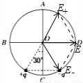 如图所示,AC、BD为圆的两条互相垂直的直径,圆心为O,半径为r,将带等电荷量的正、负点电荷放在圆周上,它们的位置关于AC对称,+q与O点的连线和OC夹角为30°,求 O点处的场强?