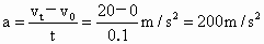 2000年8月18日,新闻联播中报道,我国空军研究人员在飞机零高度、零速度的救生脱险方面的研究取得成功.报道称:由于飞机发生故障大多数是在起飞、降落阶段,而此时的高度几乎为零高度.另外在飞行过程中会出现突然停止现象,在这种情况下,飞行员脱离险情非常困难,为了脱离危险必须在0.1s的时间内向上弹离飞机,脱离飞机的速度为20m/s,你判定一下弹离过程中的加速度为多大?