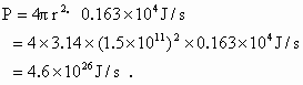 (2) 以太阳为球心,以日地距离r为半径,根据上述观测,在此球面的每平方厘米面积上每秒接收到的太阳能(即射到大气顶层的太阳能)为