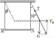 由题意,铜棒向上摆动的最大偏角θ=60°,根据对称性可知,偏角是30°时是其平衡位置,铜棒受力如图所示,则有