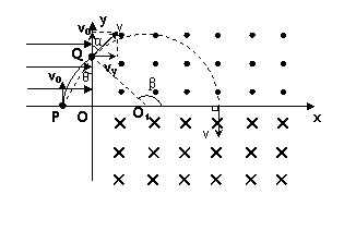 ÈçͼËùʾ£¬ÔÚµÚ¶þÏóÏÞÄÚÓÐˮƽÏòÓÒµÄÔÈÇ¿µç³¡£¬ÔÚµÚÒ»¡¢µÚËÄÏóÏÞÄÚ·Ö±ð´æÔÚÔÈÇ¿´Å³¡£¬´Å¸ÐӦǿ¶È´óСÏàµÈ£¬·½ÏòÈçͼËùʾ£»ÏÖÓÐÒ»¸ö´øµçÁ£×ÓÔÚ¸ÃÆ½ÃæÄÚ´ÓxÖáÉϵÄPµã£¬ÒÔ´¹Ö±ÓÚxÖáµÄ³õËÙ¶Èv0½øÈëÔÈÇ¿µç³¡£¬Ç¡ºÃ¾¹ýyÖáÉϵÄQµãÇÒÓëyÖá³É45o½ÇÉä³öµç³¡£¬ÔÙ¾¹ýÒ»¶Îʱ¼äÓÖÇ¡ºÃ´¹Ö±ÓÚxÖá½øÈëÏÂÃæµÄ´Å³¡¡£ÒÑÖªOPÖ®¼äµÄ¾àÀëΪd£¬²»¼ÆÁ£×ÓµÄÖØÁ¦¡£Çó£º