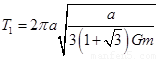 宇宙中存在由质量相等的四颗星组成的四星系统,四星系统离其他恒星较远,通常可忽略其他星体对四星系统的引力作用.已观测到稳定的四星系统存在这样一种形式:有三颗星位于边长为a的等边三角形的三个项点上,并沿外接于等边三角形的圆形轨道运行,而第四颗星刚好位于三角形的中心不动. 已知每颗星体质量均为m, 引力常量为G,星体运动的周期T=___________________。