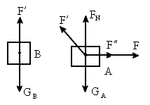 物体受力情况如图所示,物体 A和B均处于静止状态,它们所受合力均为零,所以对B分析有: