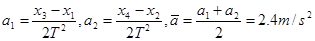 点评:本题难度较小,对于匀变速直线运动某一时刻的速度大小可由“中间时刻的瞬时速度等于平均速度”求得,加速度大小可由逐差法求得